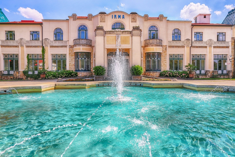 5* hotel Thermia Palace se nachází v kouzelném prostředí piešťanského Lázeňského ostrova a je přímo propojen s Lázeňským domem Irma. Kromě historického termálního bazénu – tzv. zrcadliště – se v krásně zrenovované budově ukrývá i výjimečné bahniště. Úchvatná secesní architektura z něj činí bazén s naprosto ojedinělou atmosférou na celém Slovensku.